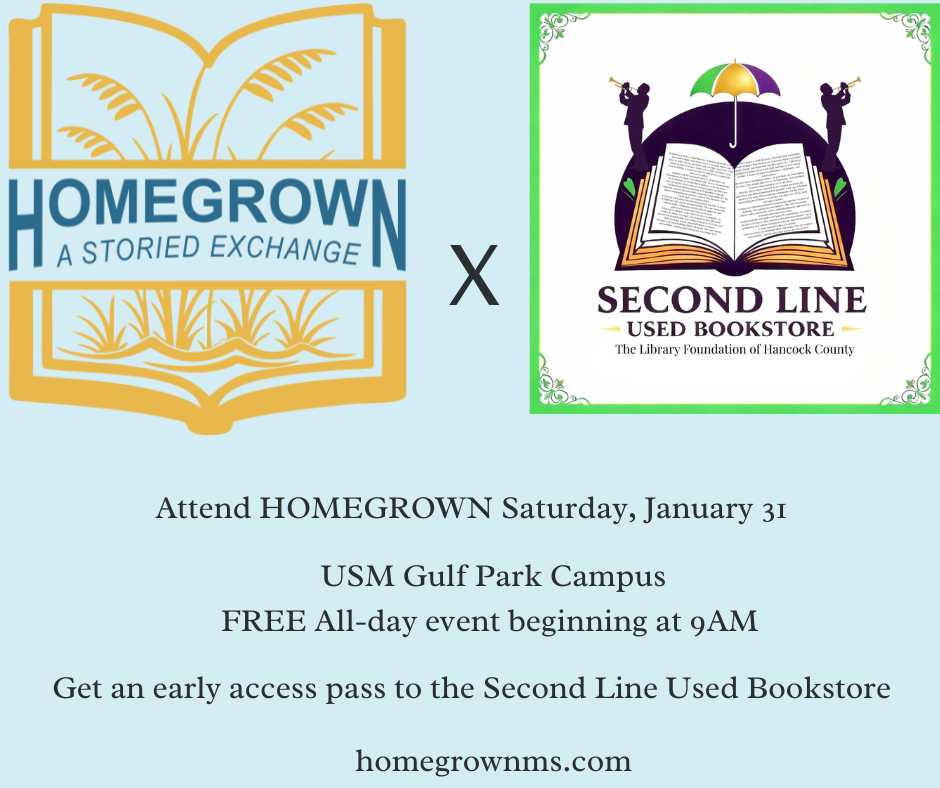 Friday, January 30, join fellow HOMEGROWN 2026 attendees for refreshments and an author talk at Pass Christian Books.